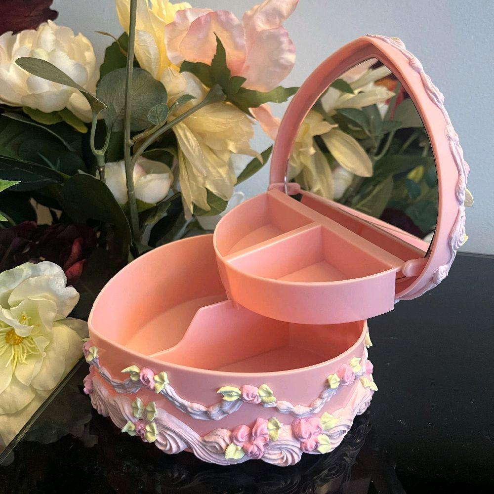 Handmade Pink and Purple Jewelry Box with Mirror for Earrings, Rings, and Necklaces - Heart Jewelry Storage Box