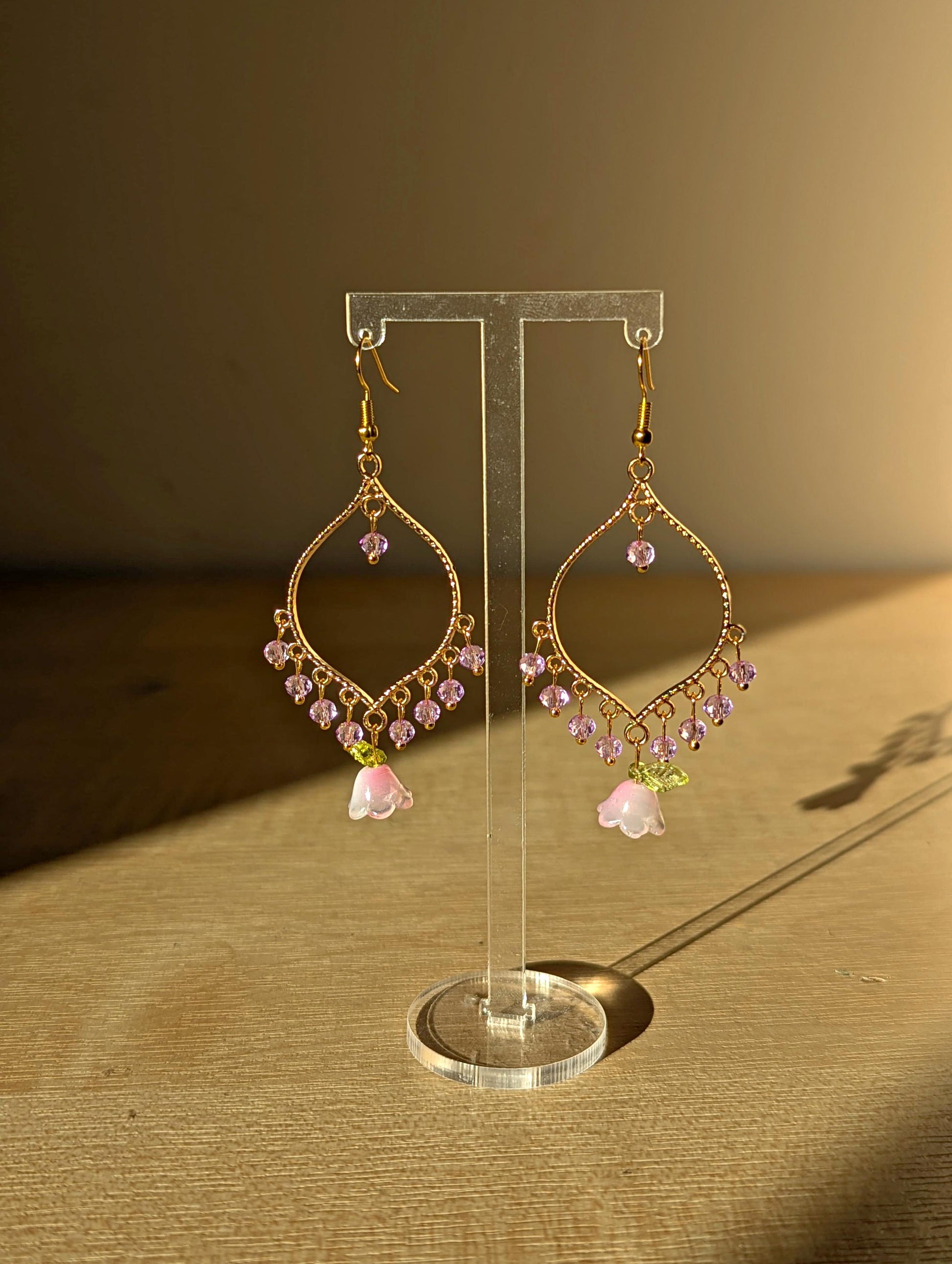 Purple Crystal Pink Flower Drop Earrings in Jhumka Style